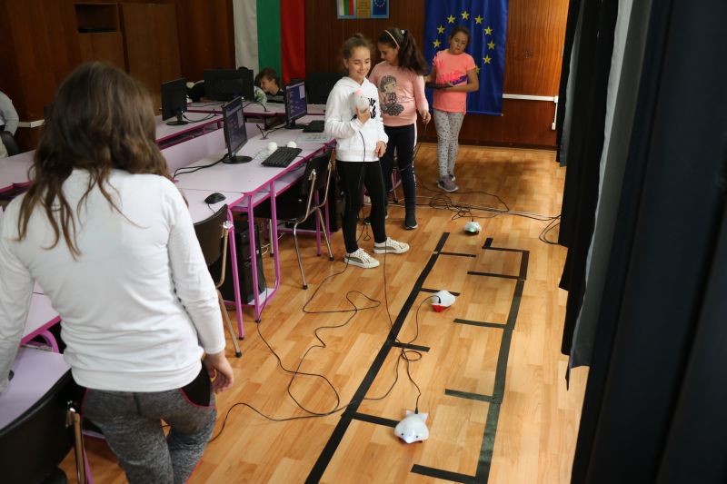 Учениците се потопиха в света на дигитализацията, танцувайки с робота Финч. С лекота и самоувереност се справяха с поставените задачи. В края на занятието резултатите бяха налице. Освен да се движи и свети, роботът може вече и да танцува.