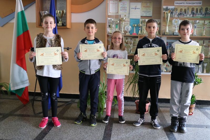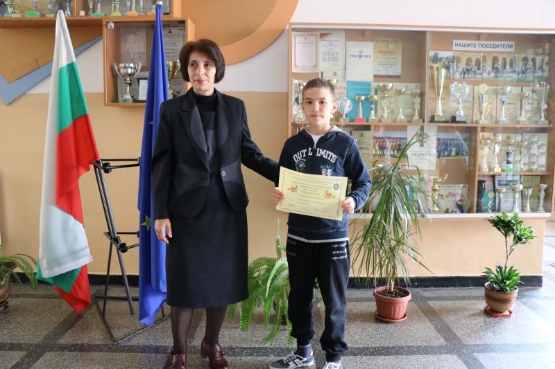 Директорът на СУ "Йордан Йовков" - Сливен, Диана Кънева, връчи грамоти за отлично представяне на учениците, показали най-добри резултати в математическото състезание Европейско кенгуру.