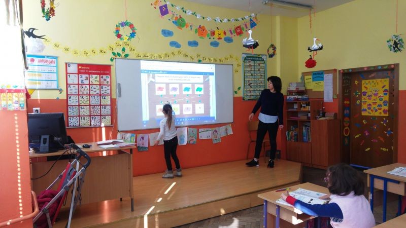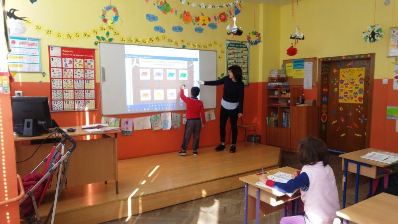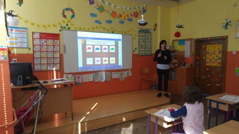 Студентите посетиха урок по математика в І клас. Г-жа Данева демонстрира пред тях ресурсите, които се предлагат в електронните учебници на издателство „Просвета“, а учениците показаха своите умения да работят с интерактивната дъска. След това г-н Веснаков демонстрира на студентите възможностите, които предлага образователната платформа „Mozabook“.