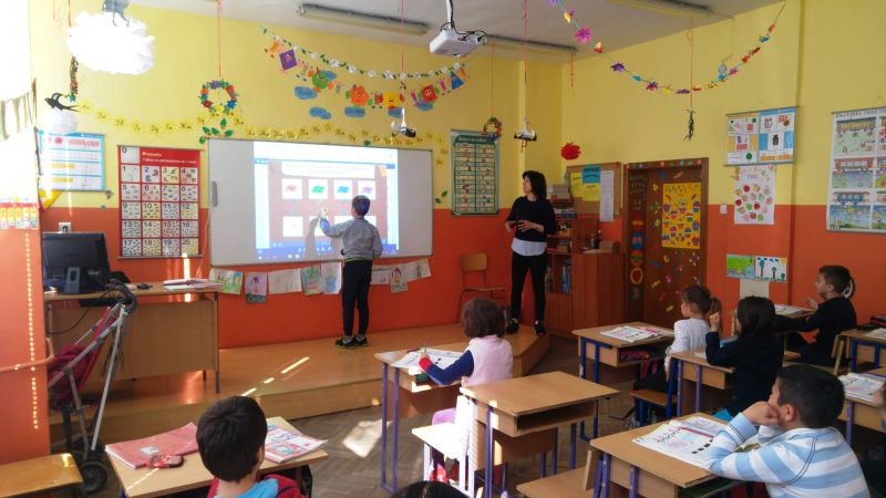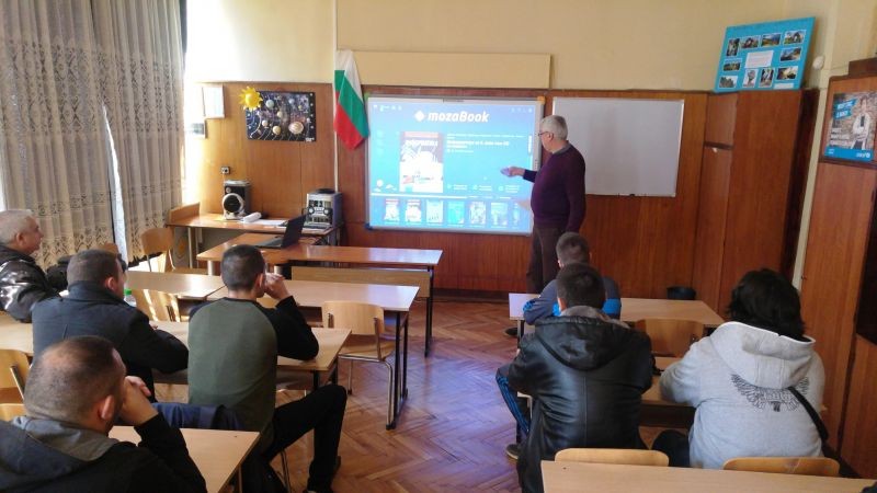 Студентите посетиха урок по математика в І клас. Г-жа Данева демонстрира пред тях ресурсите, които се предлагат в електронните учебници на издателство „Просвета“, а учениците показаха своите умения да работят с интерактивната дъска. След това г-н Веснаков демонстрира на студентите възможностите, които предлага образователната платформа „Mozabook“.