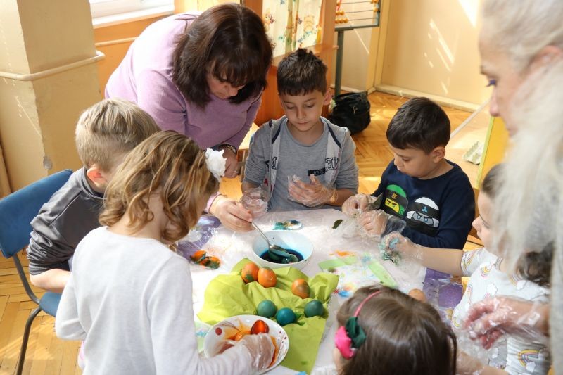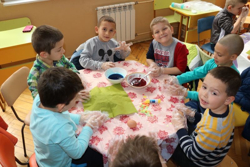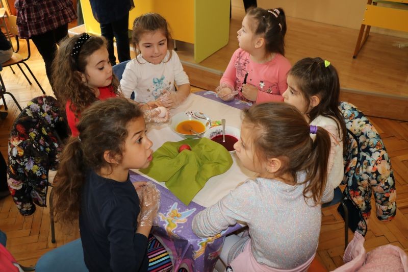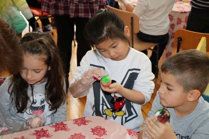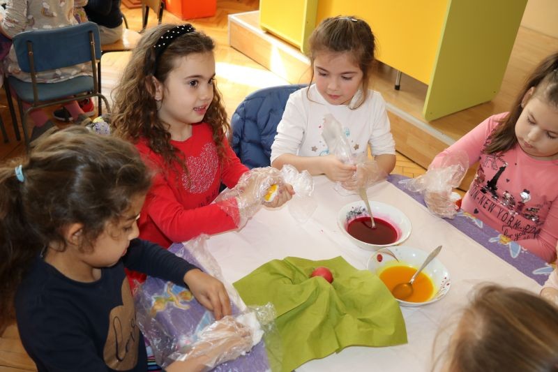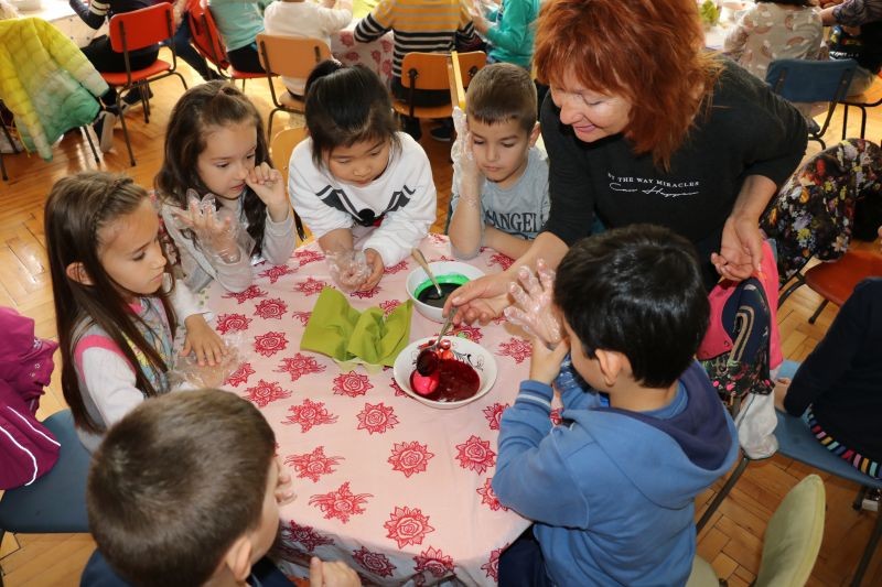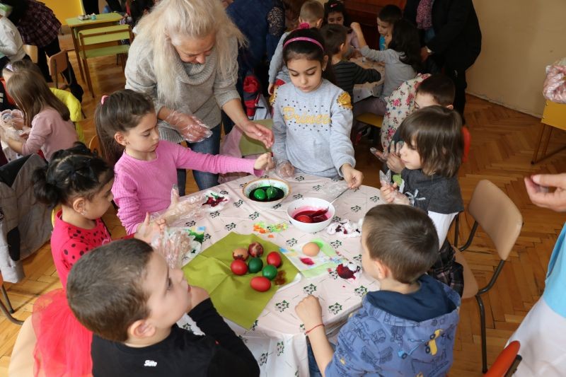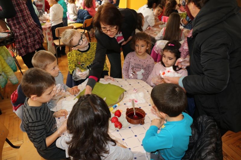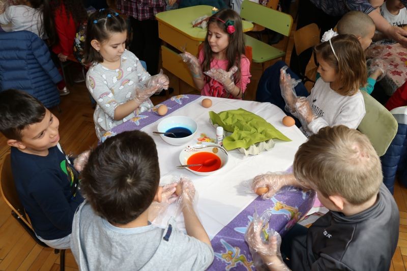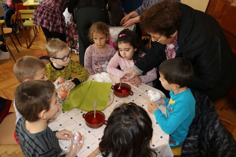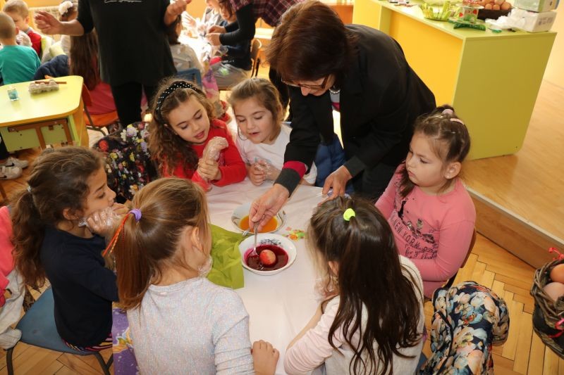 Обособени бяха работилнички за шарене на яйца, в които бяха използвани стари и нови техники за рисуването и боядисването им. Най-голям интерес децата проявиха към демонстрацията с восъчна писалка.