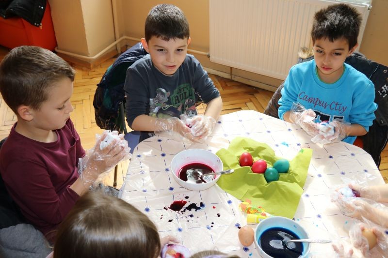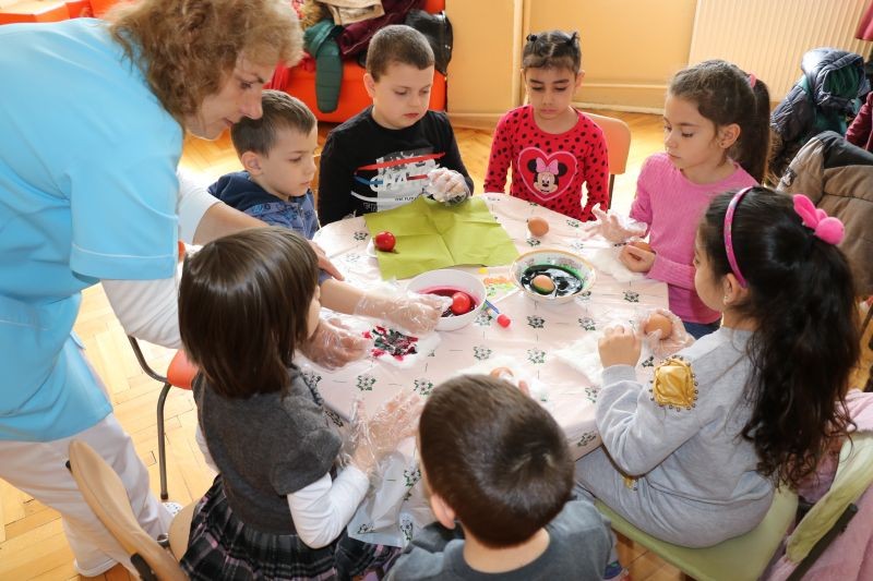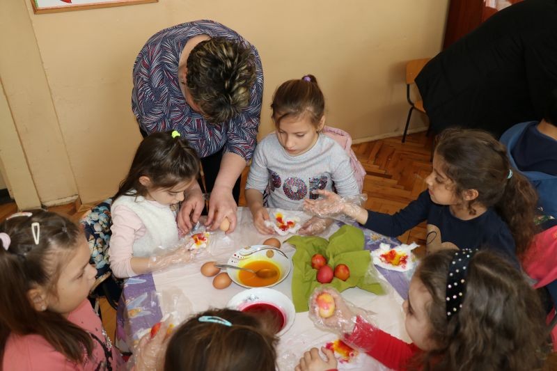 Обособени бяха работилнички за шарене на яйца, в които бяха използвани стари и нови техники за рисуването и боядисването им. Най-голям интерес децата проявиха към демонстрацията с восъчна писалка.