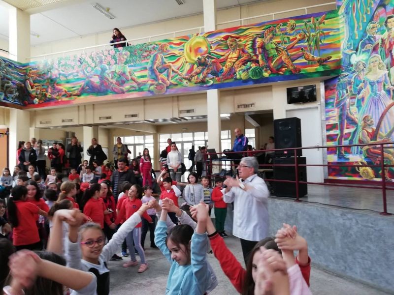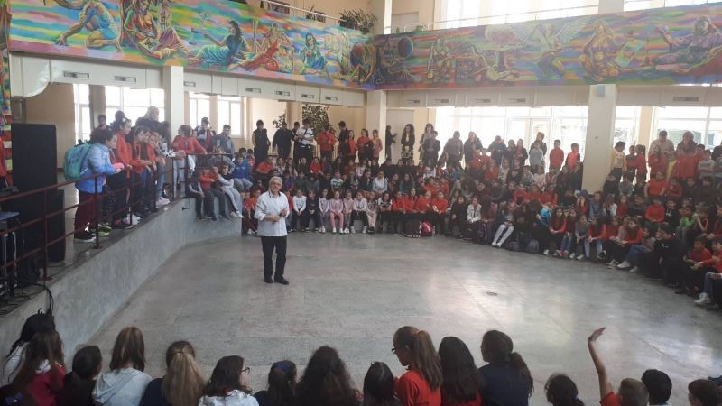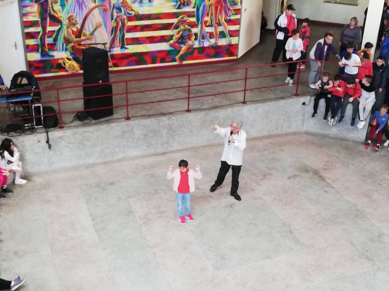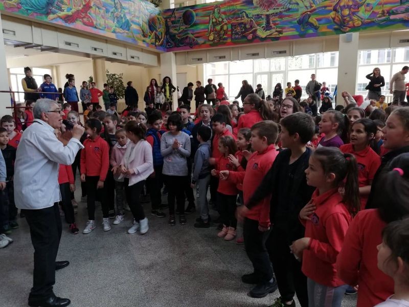 Известният композитор, поет и певец Хайгашод Агасян изнесе концерт в ОУ "Елисавета Багряна", Той изпълни едни от най-известните си хитове във форума на училището пред ученици от първи до шести клас.