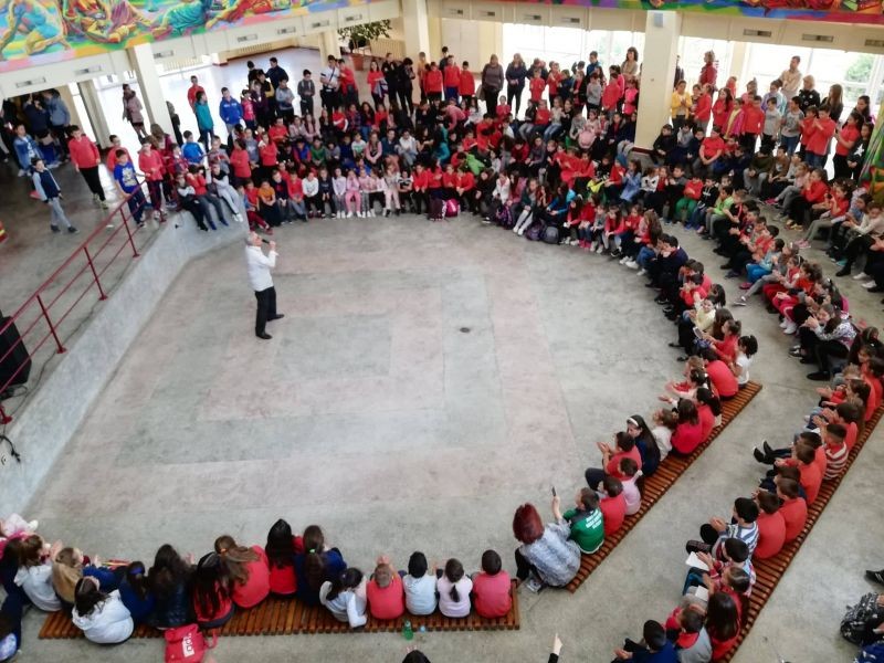 Известният композитор, поет и певец Хайгашод Агасян изнесе концерт в ОУ "Елисавета Багряна", Той изпълни едни от най-известните си хитове във форума на училището пред ученици от първи до шести клас.