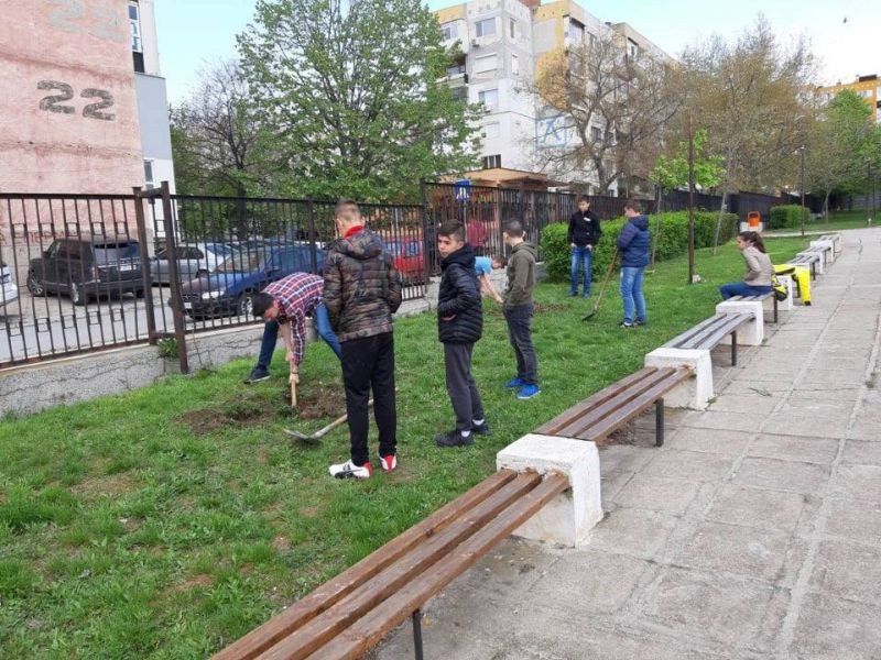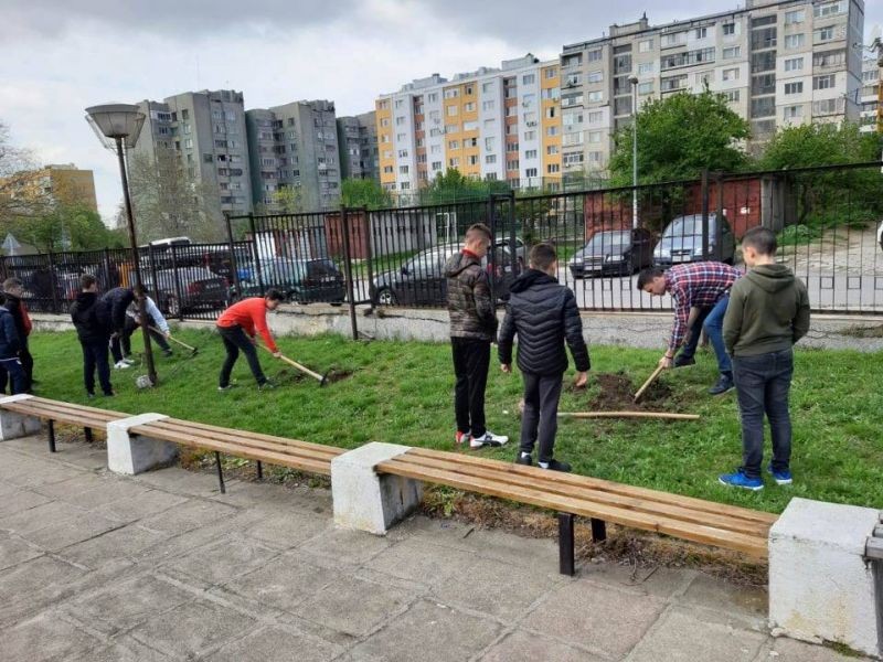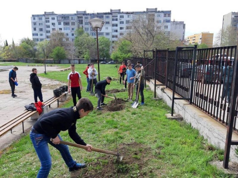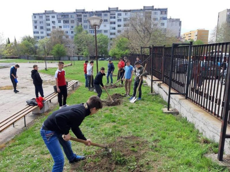 Ученици засадиха дръвчета в двора на ОУ "Елисавета Багряна"