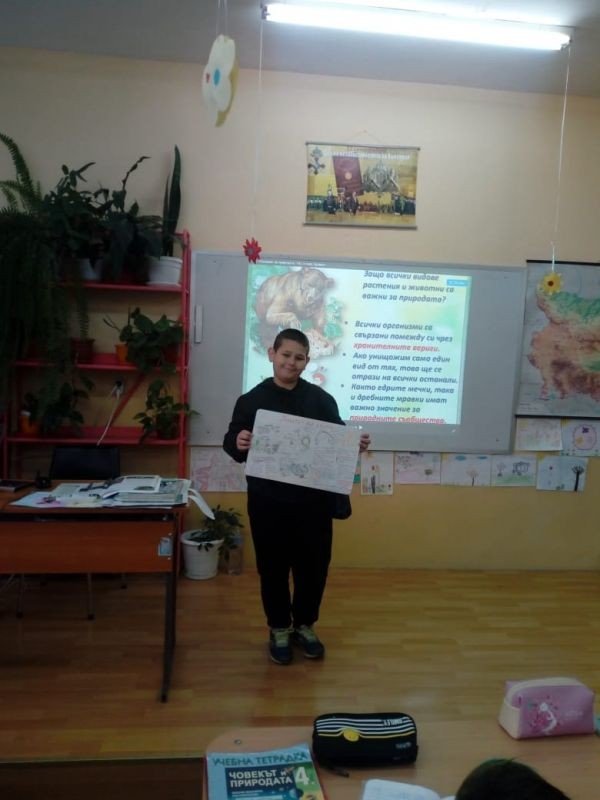 Учениците от 4"а" и 4"б" клас представиха по интересен начин своите групови и индивидуални проекти за растенията и животните в час по Човекът и природата.