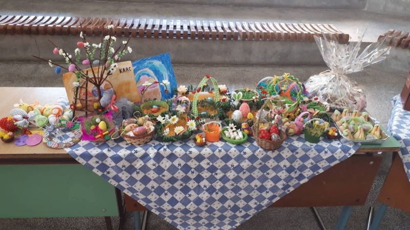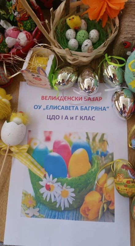 Великденски базар се състоя в ОУ "Елисавета Багряна " в Сливен. Красиви великденски изделия бяха подредени във форума на училището. Те бяха изработени от ученици от начален и прогимназиален етап.