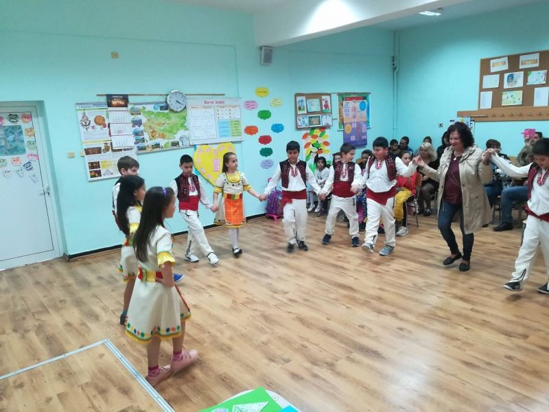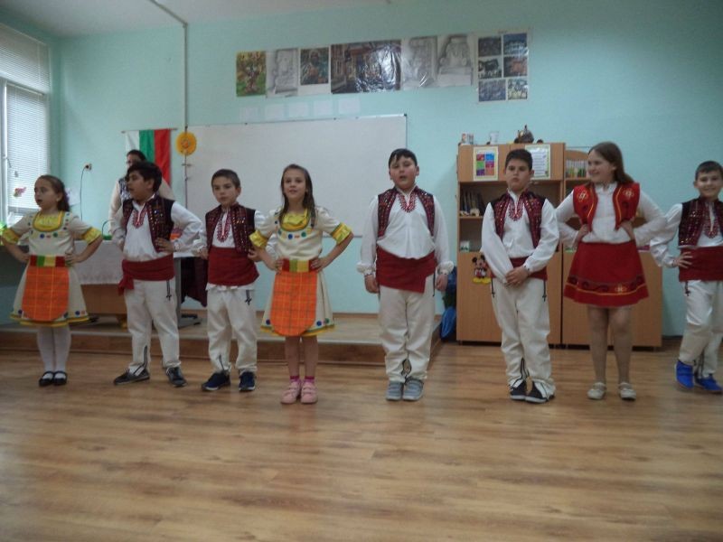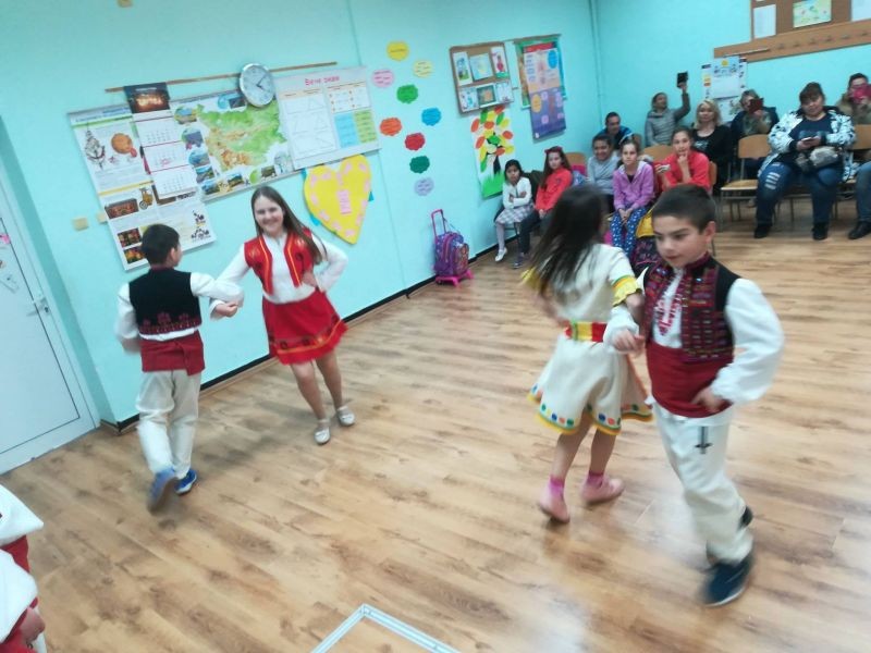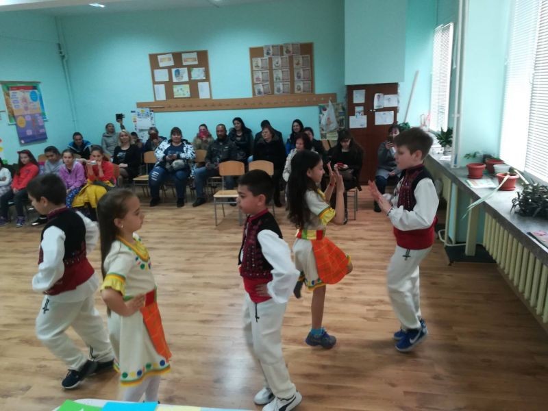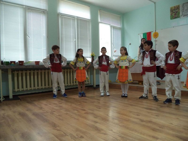 Учениците поздравиха гостите с много песни, стихотворения и танци, посветени на празниците. Класната стая се превърна в истинска сцена, а гостите аплодираха бурно децата. В края на тържеството децата поднесоха картички на своите гости и им пожелаха весело посрещане на светлия празник - Великден.