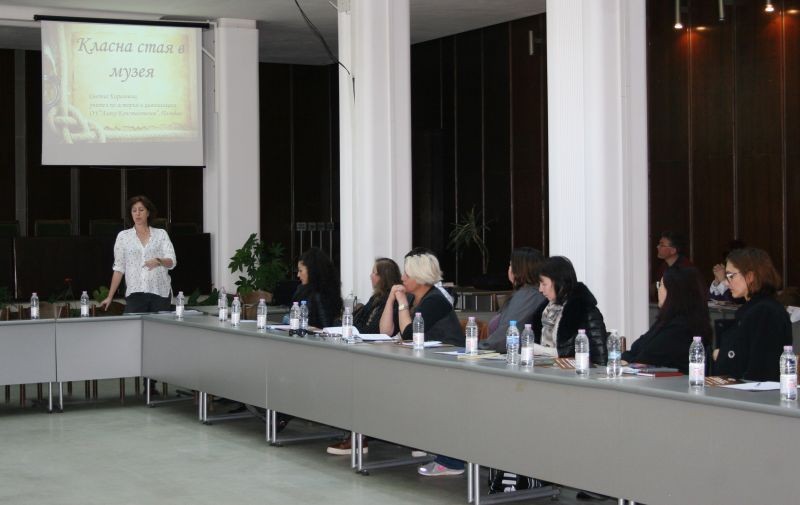 Пример за съвместна дейност между музей и училище дадоха музейния специалист Добринка Славова от РИМ „Д-р Симеон Табаков”- Сливен и учителя по история от СУ "Константин Константинов" Сливен - Мариана Куновска.Те представиха реализирания през месец март урок в музея на тема "Светът на траките".