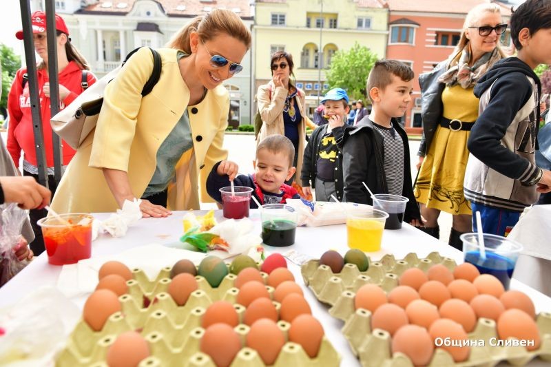 Община Сливен зарадва гражданите и гостите на града по повод предстоящите празници. На Велики четвъртък на площад „Цар Освободител“ беше изнесена импровизирана работилница за боядисване на яйца. Експерти от Регионален исторически музей „Д-р Симеон Табаков“, Национален музей на текстилната индустрия, Късноантична и средновековна крепост „Туида“, деца и преподаватели от Национална художествена гимназия „Димитър Добрович“ показваха различни видове техники за боядисване на яйца и изработване на украси – изписване с восък, плъстене на вълна, боядисване с текстил и други.