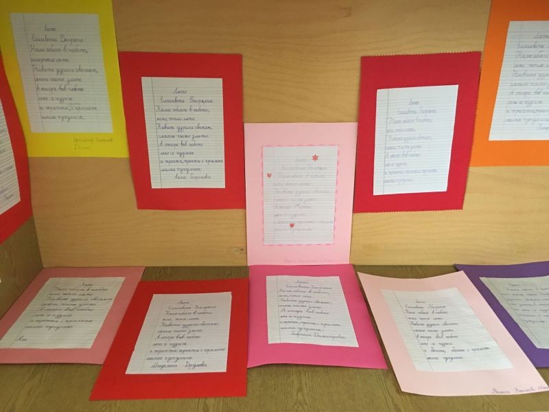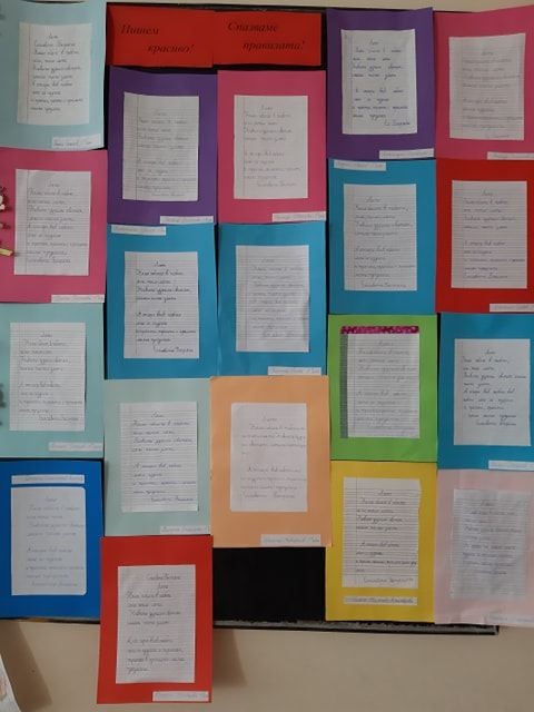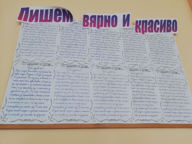 Класните ръководители на първи клас от ОУ "Елисавета Багряна" организираха конкурс по краснопис. Техните ученици преписваха стихове на Багряна по случай празника на училището. Красивите произведения бяха подредени в изложба. От всеки клас бяха наградени най-добрите краснописци.