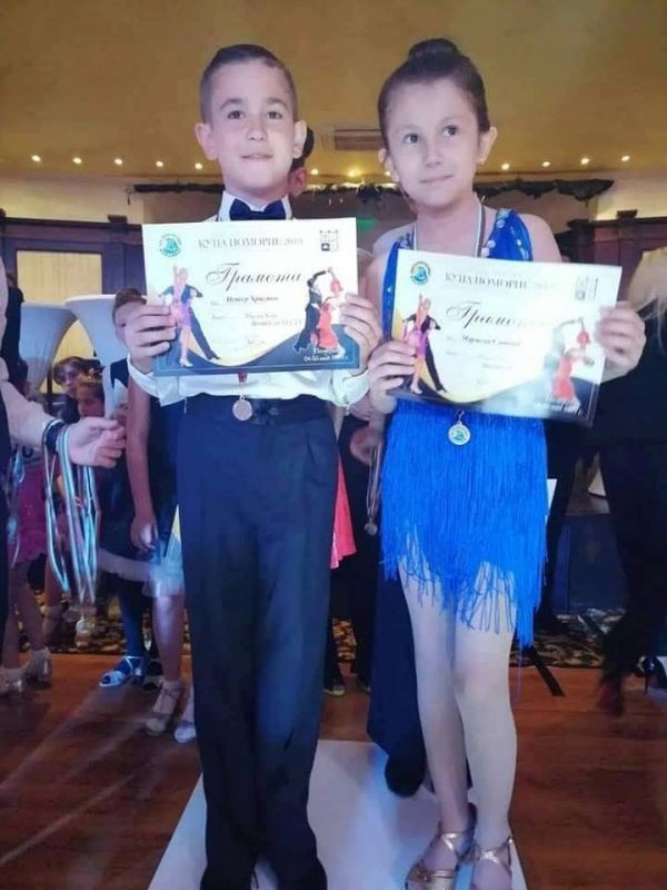 В неделя, 5. 05. 2019 г. в гр. Поморие се проведе турнир по спортни танци "Изгряващи звезди", в което участваха наши ученици. Мирослав и Елица заеха 2-ро място при деца до 11 години латина и 3-то място при деца до 9 години латина. Петър Христов и Мариела Славова заеха 2-ро място при деца до 11 години латина.