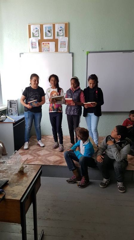 В двора на ОУ „Д-р Петър Берон”, с. Жельо войвода ме посрещна група четвъртокласници – много любопитни и много гостоприемни. Докато ме придружаваха до втория етаж, с гордост ми показаха какво е нарисувала „нашата госпожа”- паметника на Шипка и портрет на Васил Левски.