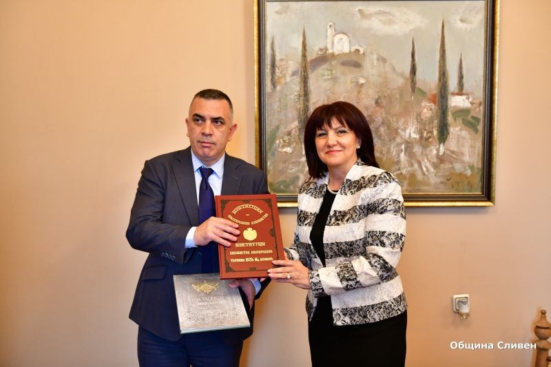 Специално изработен плакет по повод честванията на 140-та годишнина от приемането на Търновската конституция получи кметът Стефан Радев по време на срещата си с председателя на 44-то Народно събрание Цвета Караянчева.