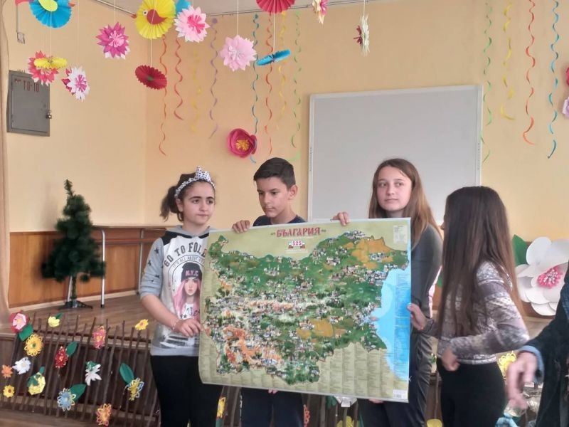 Учениците получиха карта със забележителностите на България и комплект книги с пожелание в свободното си време да четат повече книги и да споделят прочетеното.