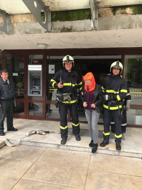 По предварително утвърден годишен план за професионална подготовка на състава на Районна служба „Пожарна безопасност и защита на населението” Сливен в сградата на Община Сливен се проведе съвместно пожаро-техническо занятие. Освен демонстрация на готовност за справяне със ситуация на пожар, целта на занятието изискваше и запознаване на състава от службата с обстановката в сградата и потенциалните рискове за възникване на извънредна ситуация със заплаха за здравето и живота на работещи и посетители и увреждане или унищожаване на общинско имущество.