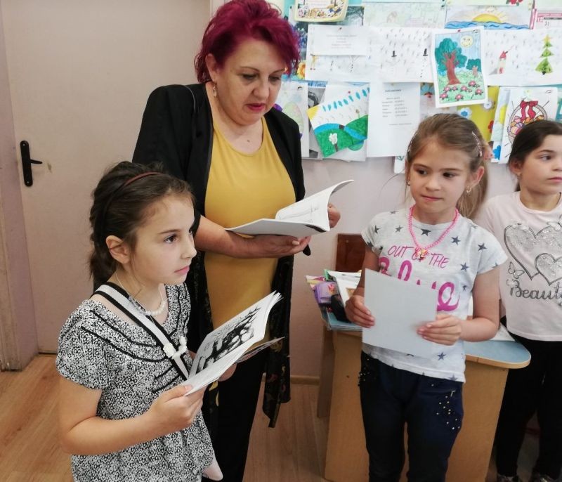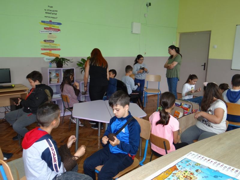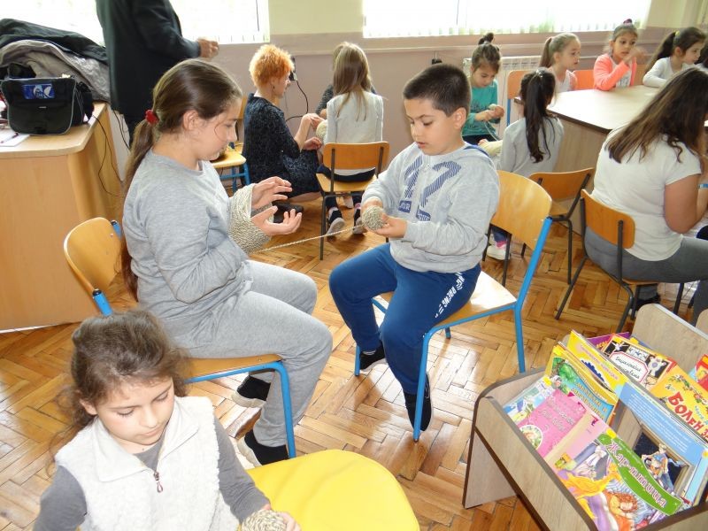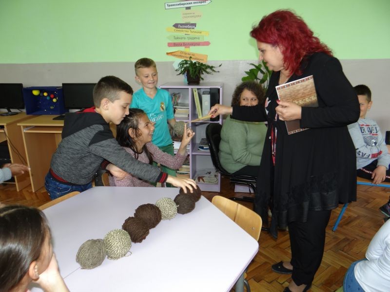 В края на заниманието децата получиха като подарък две от книгите на Дора Куршумова – „Вълнени приказки, изпредени и изтъкани от бабата на баба ми” и „Пътешествието на вълнената нишка”.