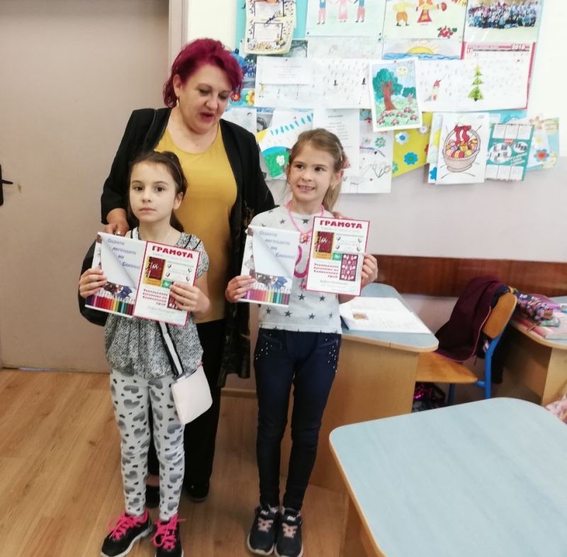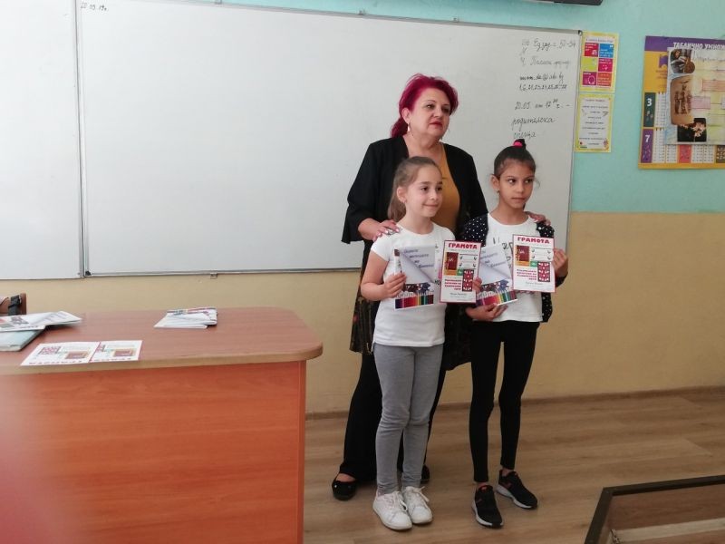 Бяха наградени и отличените деца от училището, участвали в заниманията за оцветяване на рисунки с шевици, котленски килими и престилки.