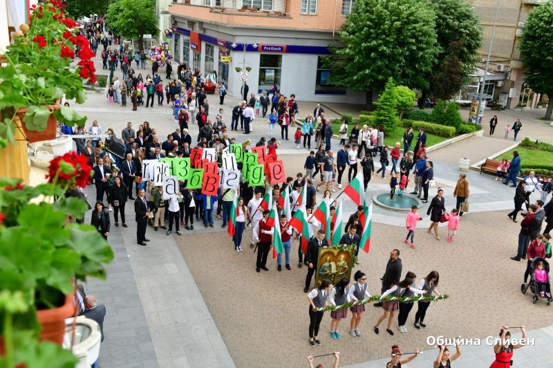 Сливен отбеляза 24 май – Денят на българската просвета и култура и славянската писменост. Многолюдното шествие започна от Градската градина, премина по главната улица и стигна до площад „Хаджи Димитър“. То беше водено от мажоретни състави, Военния духов оркестър-Сливен и ученици с български трибагреници и буквите от българската азбука в ръце. Към тях се присъединиха министърът на земеделието, храните и горите Десислава Танева, народните представители Мария Белова и Кольо Милев, председателят на Общинския съвет Димитър Митев и общински съветници, областният управител Чавдар Божурски, кметът Стефан Радев и неговите заместници Пепа Чиликова, Румен Иванов и Стоян Марков, секретарят на Общината Валя Радева, началникът на РУО-Сливен Милена Чолакова, граждани и гости на града, учители и ученици, преподаватели, студенти от филиалите на двете висши учебни заведения в Сливен – Технически университет-София и Медицински университет-Варна, както и културните институти.