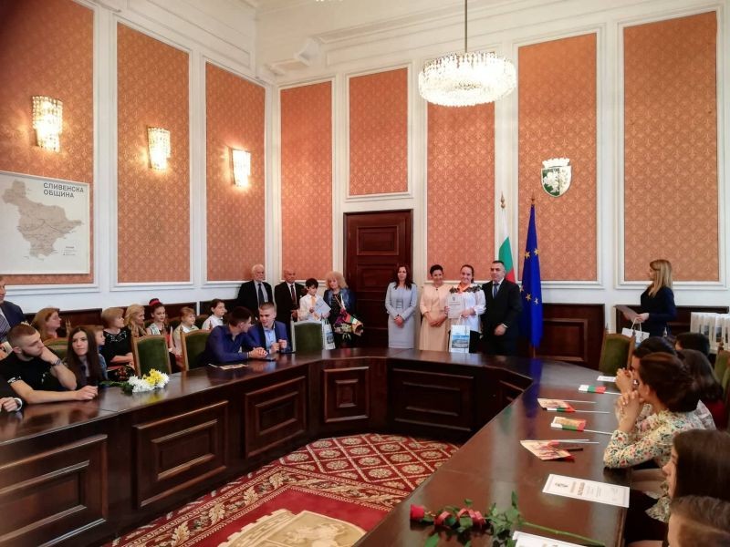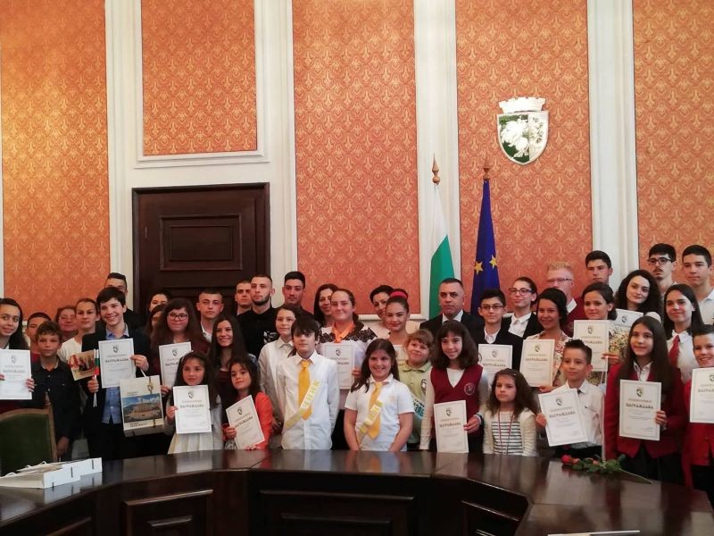 Наши ученици бяха наградени за високи постижения в национални и международни състезания и конкурси. Кметът на общината г-н Стефан Радев се срещна с 48 деца от училища от област Сливен, сред които Калоян Хаджистойчев от 4. клас и Християна Василева от 6. клас.