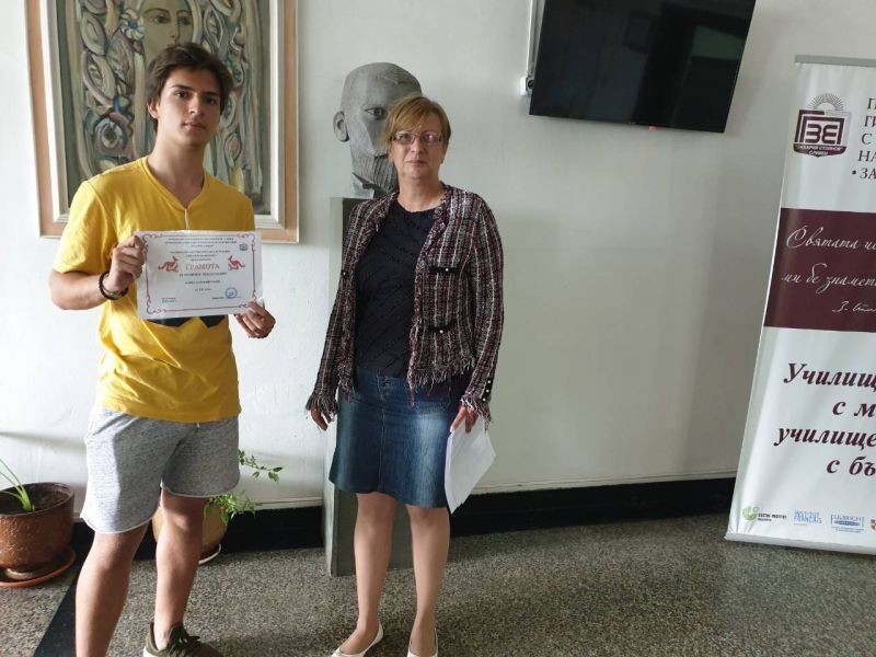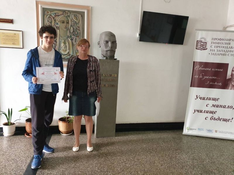 Днес, директорът на ПГПЗЕ „ЗАХАРИЙ СТОЯНОВ“, госпожа Ефросина Кисьова връчи грамоти за постигнати високи резултати в областния кръг на математическо състезание „Европейско Кенгуру“ на учениците: