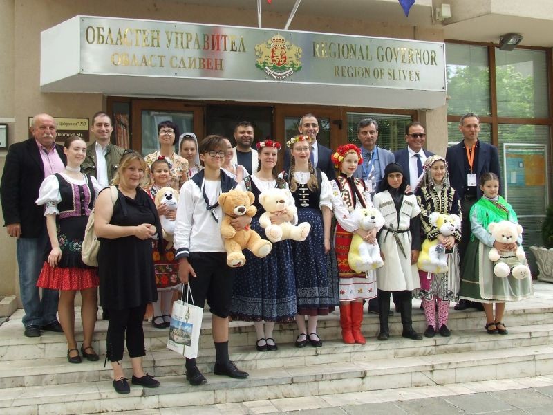 Ръководители, деца и младежи от осем чуждестранни държави посетиха областната администрация на Първи юни. Гостите бяха представители на съставите - участници в Международния детски танцов фолклорен фестивал „Приятелство без граници“, който се провежда в Сливен от 31 май до 2 юни. Зам.областният управител Камен Костов ги поздрави с Международния ден на детето. От името на областния управител Чавдар Божурски и от свое име им пожела приятни мигове на фестивала, щастливо пребиваване в града и много нови приятелства с техните връстници от Сливен. Камен Костов разказа за Сливенска област и традициите й. Организаторите от общината представиха гостите.