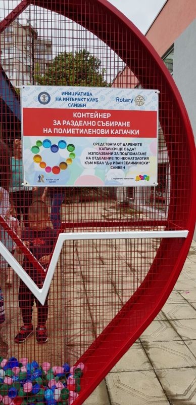 Контейнер за събиране на капачки беше поставен в сливенския квартал "Младост", до магазин "Дъга". Средствата от предаването им ще бъдат дарявани на Отделението по неонатология към МБАЛ "Д-р Иван Селимински". Инициативата е на Интеракт клуб и Ротари.