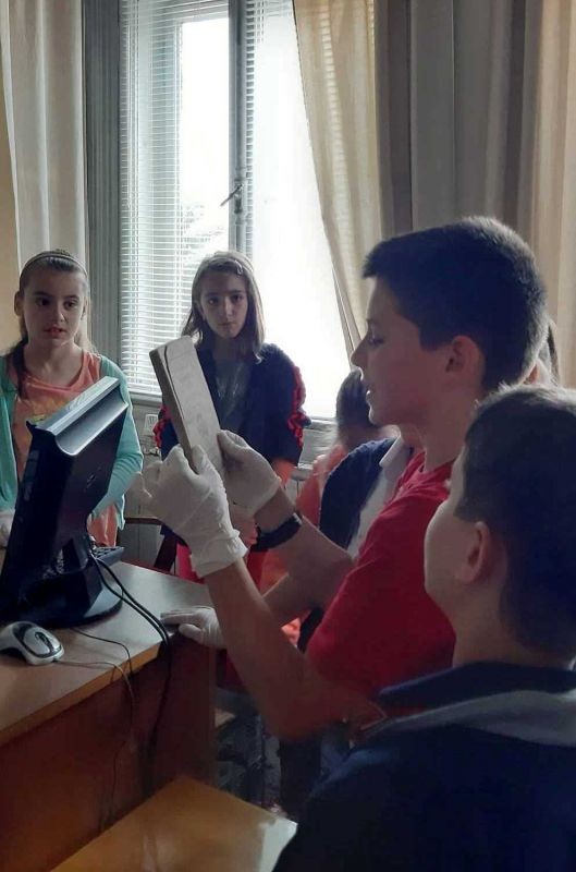 На следващия ден децата посетиха сградата на Първата държавна текстилна фабрика, където се запознаха с дейността на уредника от Научен архив и отдел "Фондове" в РИМ-Сливен.