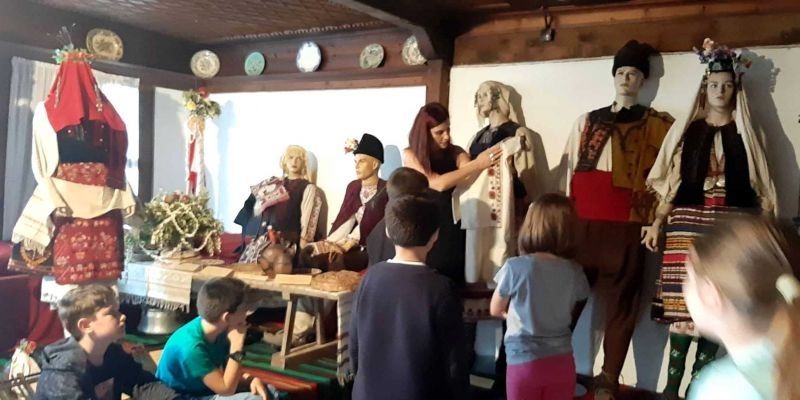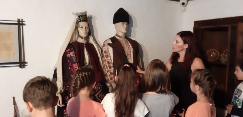 Днес децата се запознаха с архитектурата на къщата и с част от експозицията - календарните обреди, характерни за региона, обредната храна, обредните и празнични костюми от региона, ръчното домашно тъкачество. Имаха възможност да се учат да тъкат на вертикален стан.