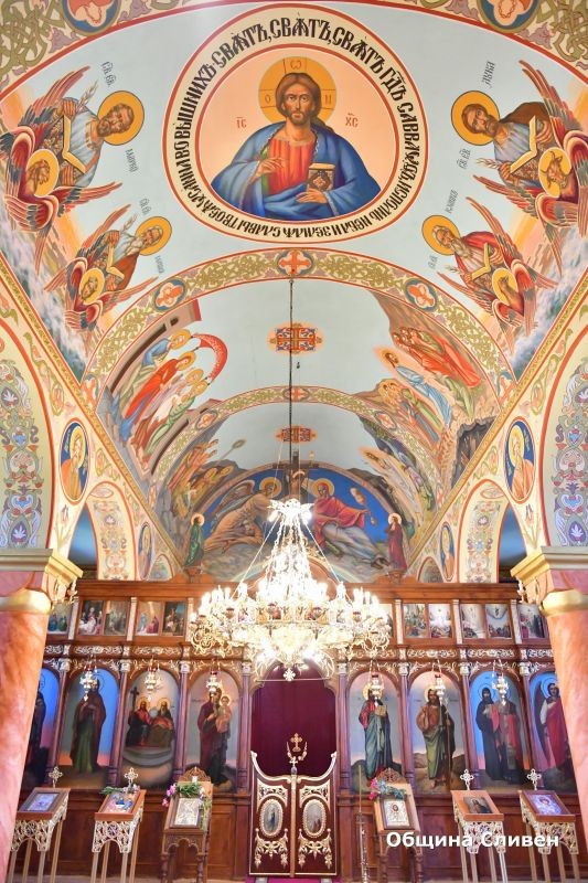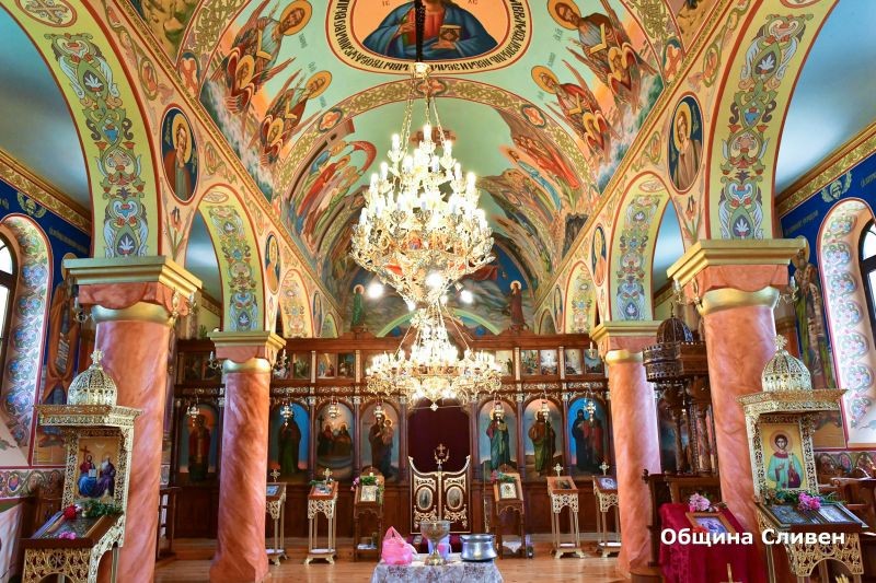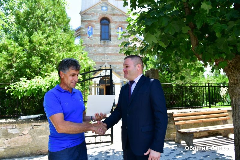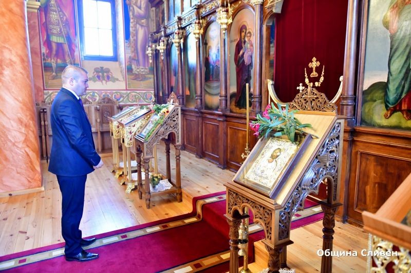 Заместник-кметът Румен Иванов запали свещ в храма и връчи поздравителен адрес на кмета на селото Димо Станков от името на кмета на Сливен Стефан Радев.