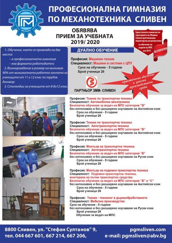 ПРИЕМ НА УЧЕНИЦИ ЗА 2019/2020 УЧЕБНА ГОДИНА СЛЕД ОСНОВНО ОБРАЗОВАНИЕ