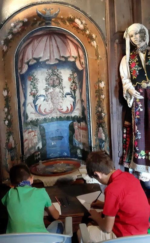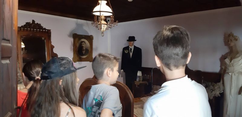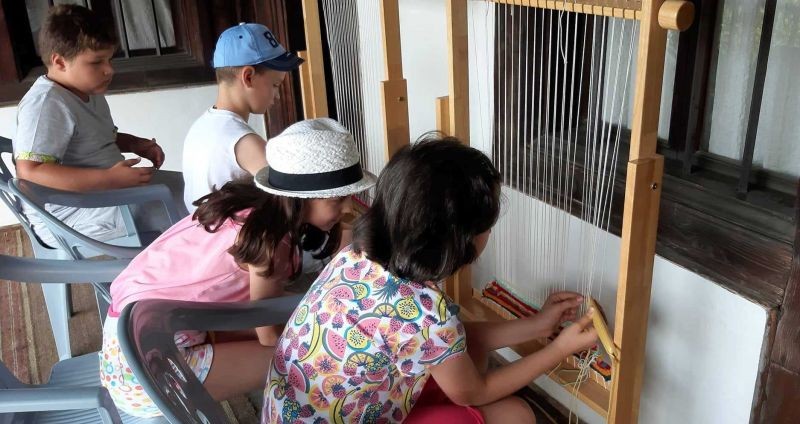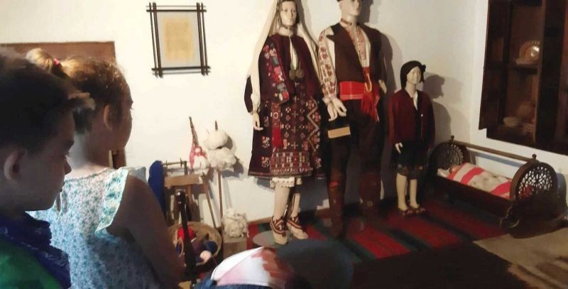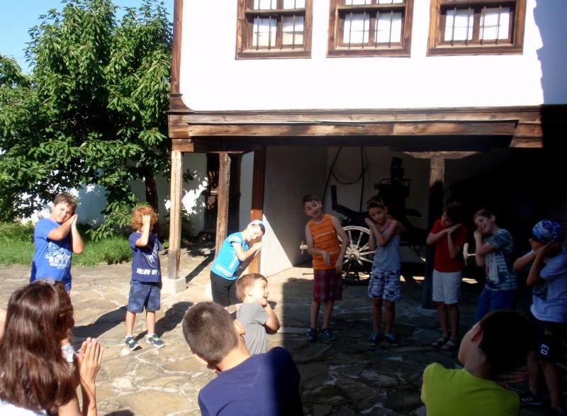 Децата се запознаха с архитектурата на къщата и с част от експозицията - календарните обреди, характерни за региона, обредната храна, обредните и празнични костюми от региона, ръчното домашно тъкачество. Имаха възможност да се учат да тъкат на вертикален стан и рисуваха.