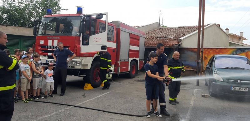 От Главна дирекция „Пожарна безопасност и защита на населението“- гр. Сливен запознаха децата с действащата в момента пожарна команда в града, както и с работата на пожарникарите. С голям интерес децата наблюдаваха демонстрациите и затвърдиха познавателния си опит!