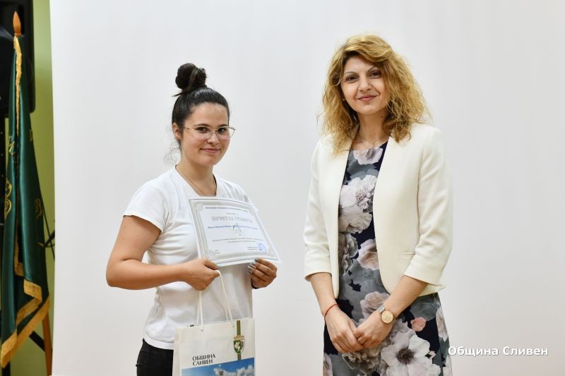 Пълен отличник на област Сливен е Тина-Мария Димитрова Бурова от ППМГ „Добри Чинтулов“, която се е представила отлично и на трите държавни зрелостни изпита. Тя получи възпоменателна монета „Старият бряст в Сливен“ от името на кмета Стефан Радев.