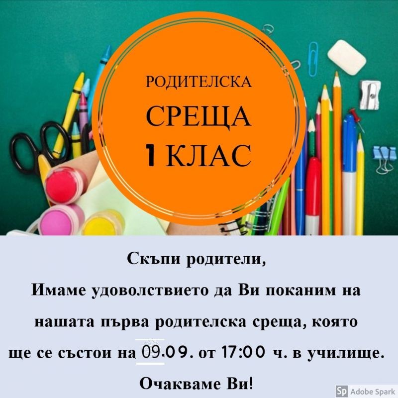 ПЪРВА РОДИТЕЛСКА СРЕЩА ЗА I КЛАС