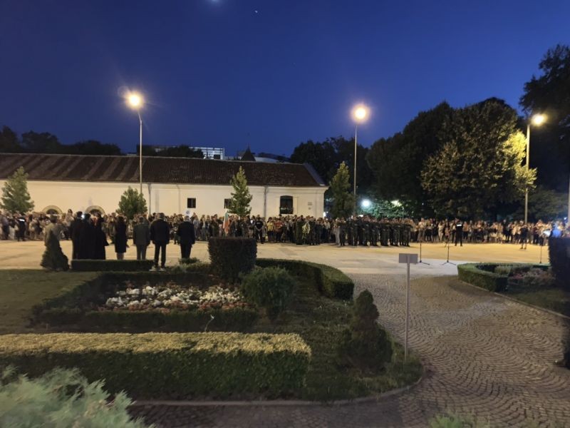 „Съединението ни дава много важен урок и той е, че когато сме отдадени на кауза, когато сме единни, когато мечтаем дръзко и действаме смело и отговорно, можем да постигнем всичко. Да живее България!”, заяви в приветствието си към сливенци кметът Стефан Радев. Негово Високопреосвещенство сливенският митрополит Иоаникий отслужи молитва за здраве и добруване на българския народ. Церемонията завърши с пищна празнична заря.