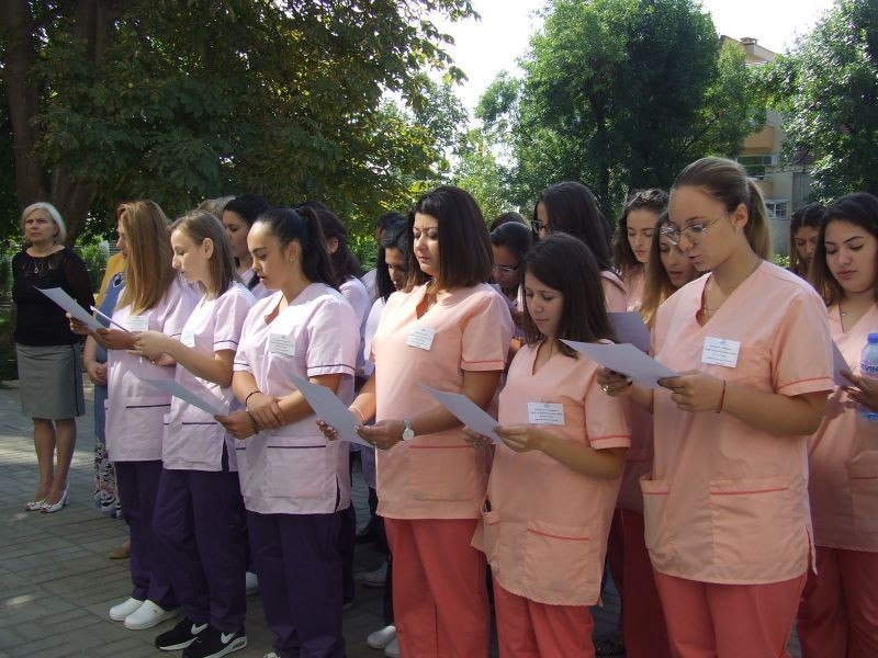 Директорът на филиала проф.д-р Иван Димитров прочете приветствие към новоприетите студенти от името на ректора проф.д-р Красимир Иванов. „Вие сте част от иновативно развиващ се, модерен университет. Вашият успех е наша цел!“, се каза в приветствието. На церемонията прозвучаха националният и студентският химн. По традиция първокурсничките положиха клетва: да ценят мъдростта на преподавателите, да се отнасят с уважение към тях и колегите, да поемат отговорност само за нещата, в които имат компетенции, да развият качествата, които ще спечелят уважението на пациентите и да уважават тяхното право на тайна, да продължат това образование през дните на целия си живот.