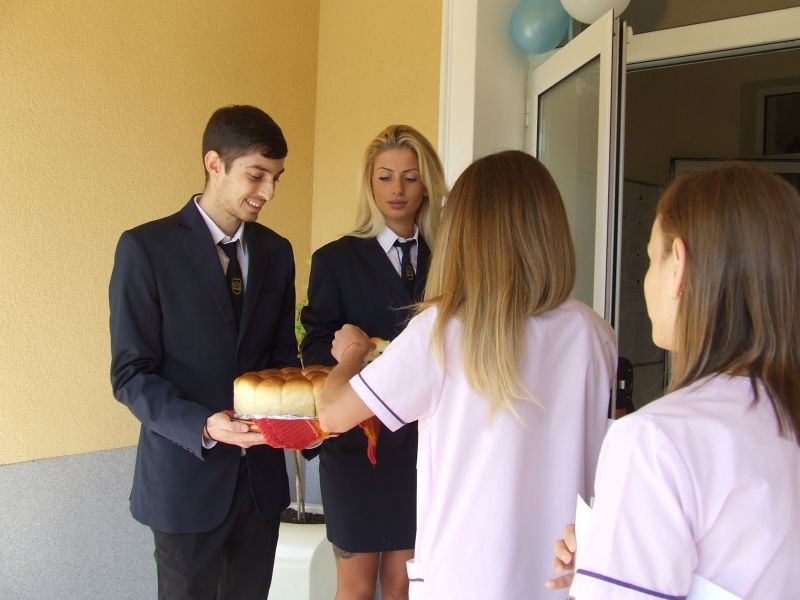 Новоприетите студенткиПроф.д-р Димитров прочете приветствие от името на ректора на МУПоздравление поднесе и кметът на община Сливен Стефан РадевНовоприетите студентки положиха клетва на първокурсникаРъководителят на филиала плисна менче с вода за успех в обучениетоПървокурсничките - към входа на сградата, където ще се проведат част от занятията имСъпредседателите на студентския съвет посрещнаха новите си колеги