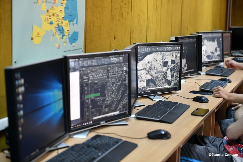 Стаята е оборудвана с 19 нови компютъра, като всяка компютърна конфигурация е с 2 монитора. Инсталиран е най-съвременният софтуер за архитектурно и геодезическо чертане.