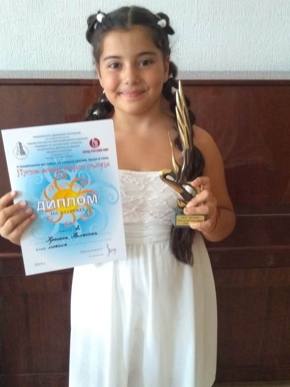 На 13.09.2019 г. се проведе заключителният етап на VI национален фестивал на руската поезия, песен и танц ,,Пусть всегда будет солнце” в град Казанлък. Във възрастова група I – IVклас в раздел поезия Красена Каменова от IV „в” клас се класира на второ място при много сериозна конкуренция от цялата страна. В годината, когато отбелязваме 220 годишнината от рождението на А.С.Пушкин, тя се представи с откъс от поемата ,,Руслан и Людмила” и спечели журито с емоционалното си изпълнение.