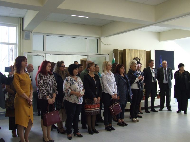 Областният управител Божурски и началникът на РУО ЧолаковаГостите бяха посрещнати от директорката Даниела Караманова12 от общо 24-те дванайсетокласника в гимназията първи ще бъдат обучени в лабораториятаМомент от посрещането на министър Вълчев в гимназиятаУчителите бяха поканени от министъра на среща след откриването на новата придобивка