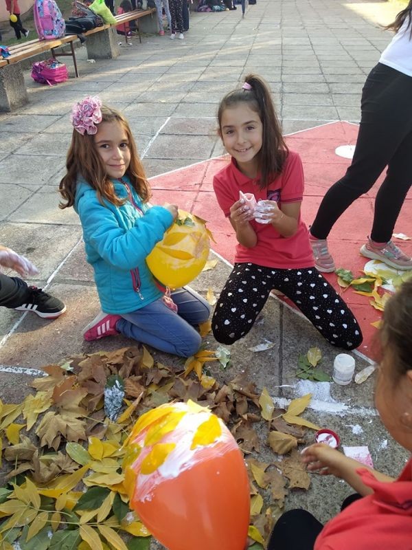 Третокласници от целодневно обучение от ОУ "Елисавета Багряна" проведоха урок на отрито в час по занимания по интереси. Учениците на г-жа Звезделина Георгиева, г-жа Гергана Султанова и г-жа Надежда Русева с ентусиазъм доказаха, че есента може да предложи изработка на красиви творения. Те направиха купи от листа.
