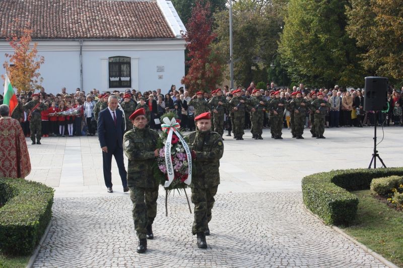 Сливен чества Димитровден с молитва за здраве и добруване, военни почести и цветя пред паметника на Хаджи Димитър