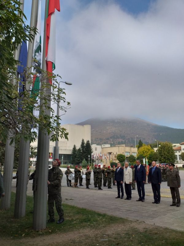 Церемонията с военни почести се състоя с участието на служещи от военно формирование 22 220. Националният флаг и флагът на Европейския съюз бяха тържествено издигнати в присъствието на временно изпълняващия длъжността кмет Румен Иванов, областния управител Чавдар Божурски, командира на Центъра за подготовка на специалисти полк.Любомир Вачев, носителя на наградата „Добри Чинтулов“ Георги Калайджиев. Гости на празничното събитие бяха още министърът на земеделието, храните и горите Десислава Танева, председателят на общинския съвет Димитър Митев, народни представители от Сливенския избирателен район ръководители на държавни структури. Присъстваха съветници, представители на културни институции, обществени организации, много граждани, деца и ученици. Приветствие към сливенци отправи Румен Иванов. Бяха поднесени венци и цветя пред паметника на Хаджи Димитър и сливенските възрожденци.