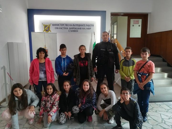 Във връзка с предстоящия празник на Полицията, четвъртокласниците от СУ „Йордан Йовков“ посетиха Областна дирекция на МВР – Сливен. Мероприятието започна с демонстрация на полицейски автомобили, а след това продължи с разглеждане на сградата на Районното управление и запознаване с работата на отделните структурни звена и завърши с демонстрация на екипировка и снаряжения на Специализираното тактическо звено за бързи действия.