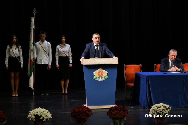 От трибуната на зала „Сливен“ избраният за втори път кмет на общината Стефан Радев благодари за подкрепата и гласуваното му доверие.