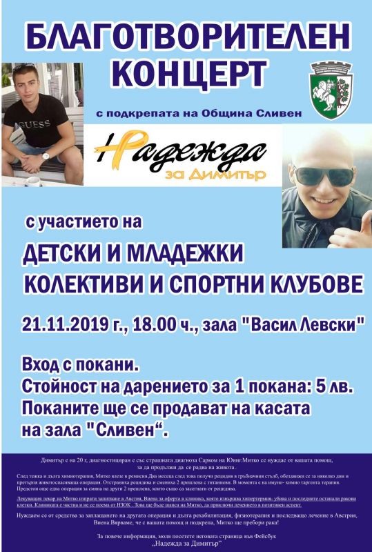 Община Сливен организира благотворителен концерт „Надежда за Димитър“.