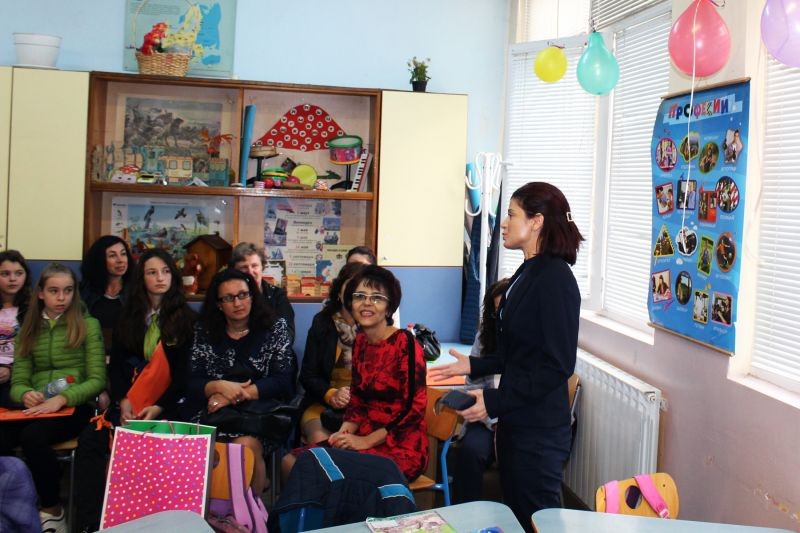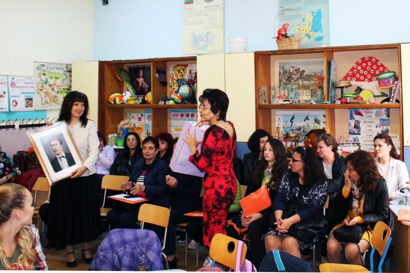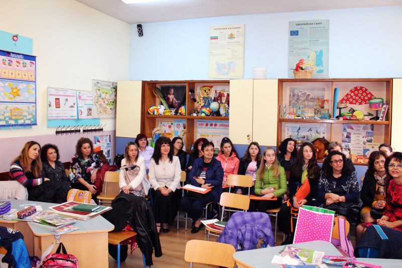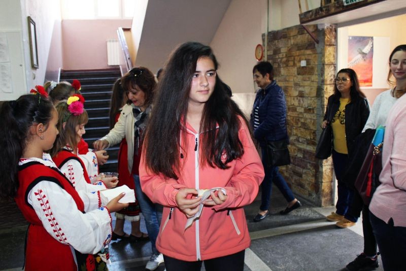 По стар български обичай драги гости се посрещат с пита и мед, да им се услади гостуването. След като сладичко си ги нагостихме, ги поканихме в нашата уютна библиотека, където на задушевна обстановка да се поопознаем. Г-жа Петя Танева- директор на ОУ "Панайот Хитов" ни представи, като след това тази възможност имаха и гостите ни, които от своя страна ни запознаха със своите училища, успехи и методи на работа.