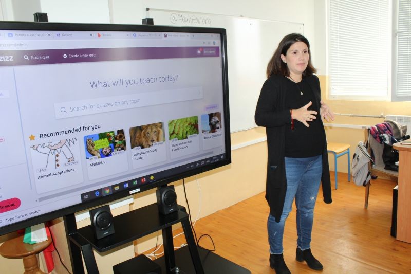 И в приключения и забава първият ден на гостуването приключи. Но бързо дойде вторият. Настана време да се свърши и малко сериозна работа, макар и за кратко. Учителите от ОУ "Панайот Хитов" представиха иновациите, с които работят на кръгла маса, на която гости бяха освен училищата партньори, така и Кристиана Станкова, старши експерт по Обществени науки, гражданско образование и религия към РУО- Сливен, Лидия Димитрова, главен учител в ПМГ „Добри Чинтулов”, преподавател по Химия и Природни науки и председател на Независимия учителски синдикат в Сливен,Таня Вълкова, заместник-директор на ОУ "Черноризец Храбър" село Крушаре, общ. Сливен, преподаватели, родители и ученици от училището ни. Милка Диамандиева - старши учител Начален етап, Мартиана Димова - старши учител Начален етап, Красимира Ганева - преподавател по Химия и Природни науки прогимназиален етап, Деница Стоева - учител по Английски език прогимназиален етап и Ивелина Тодорова - учител по Български език и литература и ЦДО прогимназиален етап, представиха накратко част от иновативните методи, които използват в преподаването си- интернет платформите LearnigApps, Quizizz, Quizzlet, Wordclouds, EdPuzzle, Kahoot!. Голям интерес предизвикаха малчуганите от клуб "Роботика", които показаха как с лекота се справят с програмирането с помощта на компютри и допълнителен хардуер, правят простички програми, игри, модели на поведение. Наблегна се и на темата за Проектно- базираното обучени, като метод за по-трайно и лесно усвояване на нови знания чрез личен опит.
