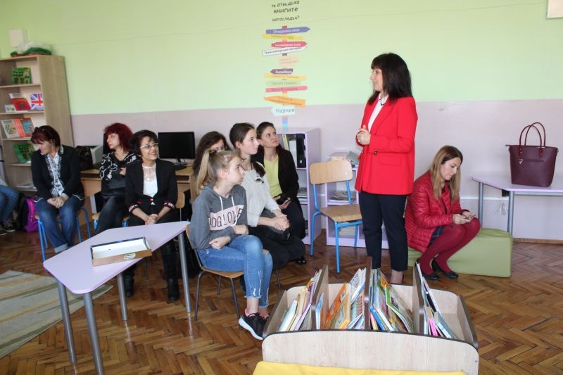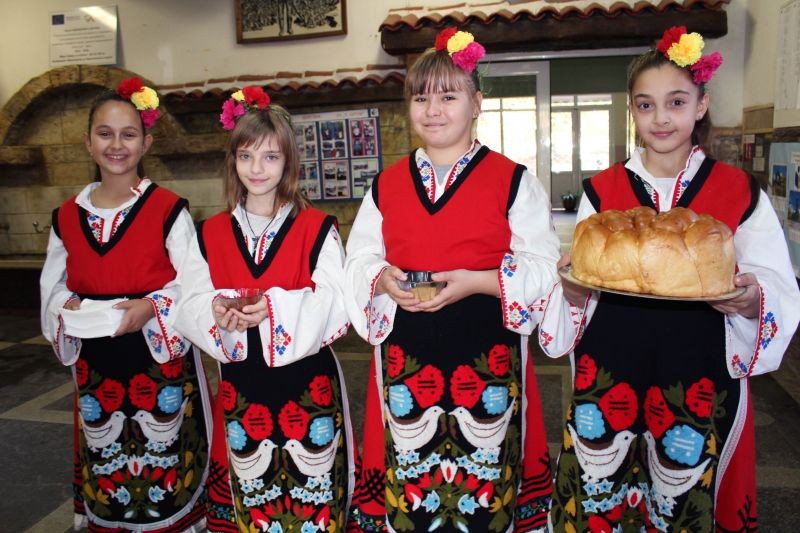 По стар български обичай драги гости се посрещат с пита и мед, да им се услади гостуването. След като сладичко си ги нагостихме, ги поканихме в нашата уютна библиотека, където на задушевна обстановка да се поопознаем. Г-жа Петя Танева- директор на ОУ "Панайот Хитов" ни представи, като след това тази възможност имаха и гостите ни, които от своя страна ни запознаха със своите училища, успехи и методи на работа.